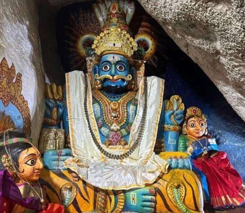 The Komuravelli Mallanna Swamy Temple is a renowned Hindu temple located on a hill at Komuravelli village in Siddipet district, Telangana, about 85 km from Hyderabad on SH–1 Rajiv Rahadari. The temple is dedicated to Lord Mallanna or Mallikarjuna Swamy, a powerful incarnation of Lord Shiva, also revered as Khandoba by Maharashtrian devotees. Unlike traditional Shiva temples, the presiding deity here is worshipped in the form of a tall Swayambhu clay idol believed to have emerged from an ant-hill. The temple holds immense cultural significance through its rich oral traditions like Oggu Katha, unique rituals such as Patnam, and grand celebrations during Maha Shivaratri, Sankranti, and Ugadi, attracting lakhs of devotees every year