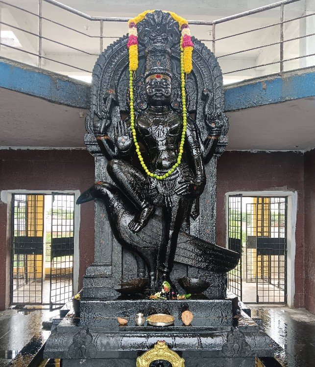 - Temple History Located about 40 km from Hyderabad, Sri Shanaishchara Swamy Temple, Madanapally (Shamshabad) is considered one of the largest and most prominent Shani temples in the world. The temple was constructed in 2012 on a vast 3-acre campus, making it a major spiritual landmark in the region. A unique feature of this temple is the presence of a small Shani Vigraham positioned in front of the grand main Shani statue, symbolizing humility and devotion before the powerful deity. The main Shani Swamy idol stands at an impressive height of approximately 12.5 feet and is worshipped along with Jeshta Mata, highlighting the traditional Shani worship lineage. In front of the main deity, the fierce guardian deities Chandi and Prachanda are installed, adding to the spiritual intensity and protective energy of the temple. One of the rare and special aspects of this shrine is that devotees are allowed to perform Abhishekam directly on the idol. Those participating in Abhishekam are guided to the second floor, from where the ritual is performed directly on the Shani Vigraham. The temple conducts Homam every Tuesday and Saturday, with a nominal ticket cost of ₹50, making it accessible to all devotees. Annadanam is performed every Saturday, serving free meals to devotees and reflecting the temple’s commitment to seva and charity. Apart from Lord Shani as the presiding deity, the temple complex also houses a Shiva Temple and a Naga Devatha shrine, allowing devotees to offer prayers to multiple deities in one sacred visit. Strategically located very close to the Bangalore Highway, the temple is easily accessible and clearly visible from the main road, making it convenient for pilgrims traveling from Hyderabad, Bangalore, and nearby regions. Another important spiritual attraction, the Samatha Murthy Statue, is situated very close to this temple, enabling devotees to visit both places on the same trip. హైదరాబాద్ నుండి సుమారు 40 కిలోమీటర్ల దూరంలో ఉన్న మదనపల్లి (శంషాబాద్)లోని శ్రీ శనైశ్చర స్వామి ఆలయం, ప్రపంచంలోని అతిపెద్ద మరియు అత్యంత ప్రముఖ శని దేవాలయాలలో ఒకటిగా పరిగణించబడుతుంది. ఈ ఆలయం 2012లో విశాలమైన 3 ఎకరాల ప్రాంగణంలో నిర్మించబడింది, ఇది ఈ ప్రాంతంలో ఒక ప్రధాన ఆధ్యాత్మిక కేంద్రంగా నిలిచింది. ఈ ఆలయం యొక్క ఒక ప్రత్యేక లక్షణం ఏమిటంటే, భారీ ప్రధాన శని విగ్రహం ముందు ఒక చిన్న శని విగ్రహం ఉండటం, ఇది శక్తివంతమైన దేవుని ముందు వినయం మరియు భక్తికి ప్రతీకగా నిలుస్తుంది. ప్రధాన శని స్వామి విగ్రహం సుమారు 12.5 అడుగుల అద్భుతమైన ఎత్తులో ఉంటుంది మరియు దీనిని జ్యేష్ట మాతతో పాటు పూజిస్తారు, ఇది సాంప్రదాయ శని ఆరాధన పరంపరను హైలైట్ చేస్తుంది. ప్రధాన దేవుని ముందు, భయంకరమైన సంరక్షక దేవతలైన చండి మరియు ప్రచండ విగ్రహాలు ప్రతిష్ఠించబడ్డాయి, ఇవి ఆలయం యొక్క ఆధ్యాత్మిక తీవ్రతను మరియు రక్షణ శక్తిని పెంచుతాయి. ఈ పుణ్యక్షేత్రంలోని అరుదైన మరియు ప్రత్యేకమైన అంశాలలో ఒకటి ఏమిటంటే, భక్తులు విగ్రహానికి నేరుగా అభిషేకం చేయడానికి అనుమతించబడతారు. అభిషేకంలో పాల్గొనే వారికి రెండవ అంతస్తుకు మార్గనిర్దేశం చేస్తారు, అక్కడి నుండి శని విగ్రహానికి నేరుగా ఈ ఆచారం నిర్వహిస్తారు. ఈ ఆలయంలో ప్రతి మంగళవారం మరియు శనివారం హోమం నిర్వహిస్తారు, దీనికి నామమాత్రపు టిక్కెట్ ధర ₹50, ఇది భక్తులందరికీ అందుబాటులో ఉంటుంది. ప్రతి శనివారం అన్నదానం నిర్వహిస్తారు, భక్తులకు ఉచిత భోజనం అందిస్తారు, ఇది సేవ మరియు దాతృత్వం పట్ల ఆలయం యొక్క నిబద్ధతను ప్రతిబింబిస్తుంది. ప్రధాన దైవంగా శని భగవానుడితో పాటు, ఆలయ సముదాయంలో శివాలయం మరియు నాగ దేవతా మందిరం కూడా ఉన్నాయి, దీనివల్ల భక్తులు ఒకే పవిత్ర సందర్శనలో బహుళ దేవతలకు ప్రార్థనలు చేసుకోవచ్చు. బెంగళూరు హైవేకి చాలా సమీపంలో వ్యూహ