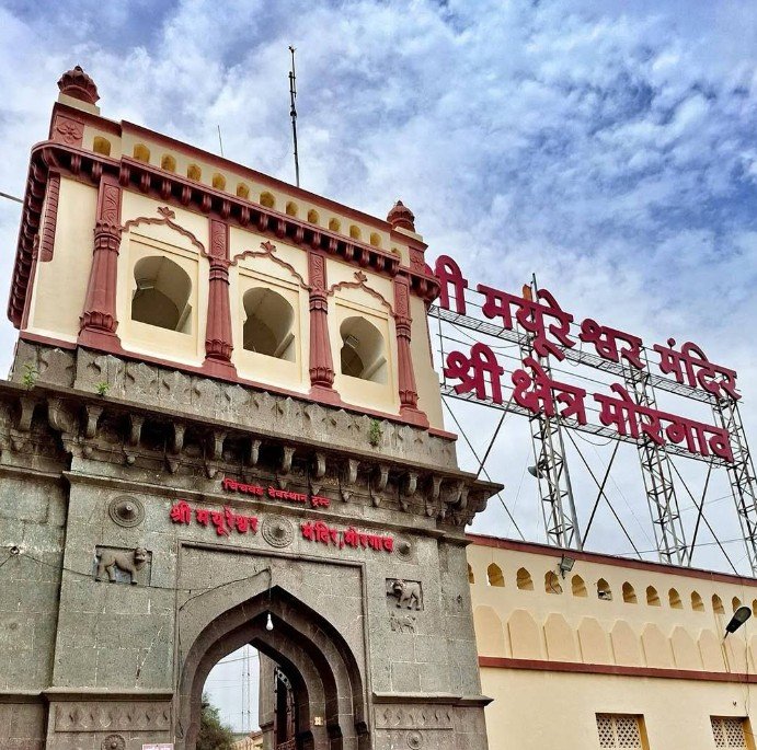 - Temple History Shri Mayureshwar Ganpati Temple at Morgaon is one of the oldest Ganesha temples in Maharashtra, with origins traced between the 14th and 17th centuries. The temple enshrines a swayambhu (self-manifested) idol of Lord Ganesha in the form of Mayureshwar, “Lord of the Peacock.” Mythology states that Lord Ganesha assumed this form to defeat the demon Sindhu, restoring peace and harmony to the world. The temple’s architecture reflects traditional styles of the period, and it has been supported and maintained by generations of devotees and local rulers, including the Peshwas. Morgaon itself is historically linked to peacocks, which are symbolically associated with Lord Mayureshwar. The temple is considered the primary shrine of the Ashtavinayak pilgrimage, making it the first and last stop for devotees visiting the eight sacred Ganesha temples in Maharashtra. Pilgrims believe that worshipping Lord Mayureshwar here brings wisdom, prosperity, and spiritual liberation. Beyond its religious significance, the temple also serves as a cultural and community center, hosting major festivals like Ganesh Chaturthi with grand rituals, processions, and community celebrations. Its central role in Ganapatya worship and enduring mythological connections make it a vital spiritual landmark in Maharashtra. మోర్గావ్లోని శ్రీ మయూరేశ్వర గణపతి ఆలయం మహారాష్ట్రలోని పురాతన గణేశ దేవాలయాలలో ఒకటి, దీని మూలాలు 14వ మరియు 17వ శతాబ్దాల మధ్య కాలానికి చెందినవిగా గుర్తించబడ్డాయి. ఈ ఆలయంలో మయూరేశ్వరుని రూపంలో ఉన్న స్వయంభూ గణేశ విగ్రహం ప్రతిష్ఠించబడింది. పురాణాల ప్రకారం, సింధు అనే రాక్షసుడిని సంహరించి, ప్రపంచంలో శాంతి సామరస్యాలను పునఃస్థాపించడానికి గణేశుడు ఈ రూపాన్ని ధరించాడు. ఆలయ వాస్తుశిల్పం ఆ కాలపు సాంప్రదాయ శైలులను ప్రతిబింబిస్తుంది, మరియు ఇది పీష్వాలతో సహా తరతరాల భక్తులు మరియు స్థానిక పాలకులచే పోషించబడి, నిర్వహించబడింది. మోర్గావ్కు చారిత్రాత్మకంగా నెమళ్లతో సంబంధం ఉంది, ఇవి మయూరేశ్వర స్వామితో ప్రతీకాత్మకంగా ముడిపడి ఉన్నాయి. ఈ ఆలయం అష్టవినాయక యాత్రలో ప్రధాన పుణ్యక్షేత్రంగా పరిగణించబడుతుంది, మహారాష్ట్రలోని ఎనిమిది పవిత్ర గణేశ దేవాలయాలను సందర్శించే భక్తులకు ఇది మొదటి మరియు చివరి గమ్యస్థానం. ఇక్కడ మయూరేశ్వర స్వామిని పూజిస్తే జ్ఞానం, సంపద మరియు ఆధ్యాత్మిక విముక్తి లభిస్తాయని యాత్రికులు నమ్ముతారు. దాని మతపరమైన ప్రాముఖ్యతతో పాటు, ఈ ఆలయం ఒక సాంస్కృతిక మరియు సామాజిక కేంద్రంగా కూడా పనిచేస్తుంది, గణేష్ చతుర్థి వంటి ప్రధాన పండుగలను గొప్ప ఆచారాలు, ఊరేగింపులు మరియు సామూహిక వేడుకలతో నిర్వహిస్తుంది. గణపత్య ఆరాధనలో దాని కేంద్ర పాత్ర మరియు శాశ్వత పౌరాణిక సంబంధాలు దీనిని మహారాష్ట్రలో ఒక ముఖ్యమైన ఆధ్యాత్మిక కేంద్రంగా నిలబెట్టాయి. मोरगाव येथील श्री मयूरेश्वर गणपती मंदिर हे महाराष्ट्रातील सर्वात प्राचीन गणेश मंदिरांपैकी एक आहे, ज्याचा उगम १४ व्या ते १७ व्या शतकादरम्यानचा मानला जातो. या मंदिरात मयूरेश्वराच्या रूपात भगवान गणेशाची स्वयंभू मूर्ती आहे. पौराणिक कथेनुसार, भगवान गणेशाने सिंधू राक्षसाचा वध करून जगामध्ये शांतता आणि सलोखा प्रस्थापित करण्यासाठी हे रूप धारण केले होते. मंदिराची वास्तुकला त्या काळातील पारंपरिक शैली दर्शवते आणि पेशव्यांसह अनेक पिढ्यांचे भक्त व स्थानिक शासकांनी या मंदिराला आधार दिला असून त्याची देखभाल केली आहे. मोरगा