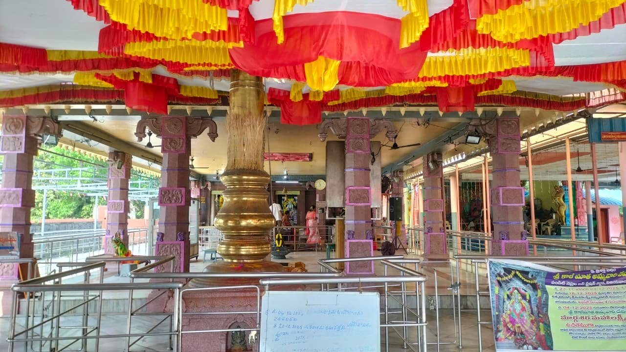 - Temple History The temple of Goddess Kali is one of the rare modern temples. It is located on the banks of the holy Krishnaveni river and is adorned with the idols of the three powers of Goddess Mahakali, Goddess Mahalakshmi and Goddess Mahasaraswati, who are the symbols of will and knowledge. It is also a sacred place with eighteen holy feet Sri Degapudi Kodandarami Reddy, a military engineer, found the Swayambhu Sri Mahakali idol in the forests around Nellore and brought it to Vijayawada. On 14.10.1947, a devotee of Shakti Upasakku Sri Gunja Ramaswamy, known as Kali Das, conducted puja rituals for about one and a half years as a small temple. The temple was closed due to the influence of Kali until January 1 of the following year. When the temple was opened with the idea of renovation, the temple was opened by the spiritualist Sri Turaka Venkateswarlu and the visitors were amazed by the light. The temple premises seemed to have been cleaned recently. Therefore, since then this place has become famous as the Swayambhu of Sri Mahakali Ammavari and is being worshipped with the enthusiasm of thousands of devotees. In the year 1976, as a beginning of the renovation for the convenience of the increasing number of devotees, This area has been established as the abode of the Goddess, every year, every year. According to the words of the Devi Geeta, "Sarva Drishyam Mamasthanam" means that in the entire place that is seen, I am the holy abode and the place of worship, and it is true that I am the true abode and the place of worship.కాళీమాత ఆలయం అరుదైన ఆధునిక ఆలయాలలో ఒకటి. ఇది పవిత్ర కృష్ణవేణి నది ఒడ్డున ఉంది మరియు సంకల్పం మరియు జ్ఞానానికి చిహ్నాలైన మహాకాళి దేవి, మహాలక్ష్మి మరియు మహాసరస్వతి దేవతల మూడు శక్తుల విగ్రహాలతో అలంకరించబడింది. ఇది పద్దెనిమిది పవిత్ర పాదాలు కలిగిన పవిత్ర స్థలం కూడా. శ్రీ డేగపూడి కోదండరామి రెడ్డి అనే సైనిక ఇంజనీర్ నెల్లూరు చుట్టూ ఉన్న అడవులలో స్వయంభు శ్రీ మహాకాళి విగ్రహాన్ని కనుగొని విజయవాడకు తీసుకువచ్చారు. 14.10.1947న, కాళీదాస్ అని పిలువబడే శక్తి ఉపాసక్కు శ్రీ గుంజా రామస్వామి భక్తుడు, ఒక చిన్న ఆలయంగా సుమారు ఒకటిన్నర సంవత్సరాలు పూజా కార్యక్రమాలు నిర్వహించారు. కాళీ ప్రభావం కారణంగా ఆలయం మరుసటి సంవత్సరం జనవరి 1 వరకు మూసివేయబడింది. పునరుద్ధరణ ఆలోచనతో ఆలయం తెరిచినప్పుడు, ఆధ్యాత్మికవేత్త శ్రీ తురక వెంకటేశ్వర్లు ఆలయాన్ని తెరిచారు మరియు సందర్శకులు ఆ కాంతిని చూసి ఆశ్చర్యపోయారు. ఆలయ ప్రాంగణం ఇటీవల శుభ్రం చేయబడినట్లు అనిపించింది. అందువల్ల, అప్పటి నుండి ఈ ప్రదేశం శ్రీ మహాకాళి అమ్మవారి స్వయంభూగా ప్రసిద్ధి చెందింది మరియు వేలాది మంది భక్తుల ఉత్సాహంతో పూజలు అందుకుంటోంది. 1976 సంవత్సరంలో, పెరుగుతున్న భక్తుల సౌలభ్యం కోసం పునరుద్ధరణ ప్రారంభంలో, ఈ ప్రాంతం ప్రతి సంవత్సరం, ప్రతి సంవత్సరం దేవత నివాసంగా స్థాపించబడింది. దేవి గీతలోని మాటల ప్రకారం, "సర్వ దృశ్యం మమస్థానం" అంటే కనిపించే మొత్తం ప్రదేశంలో, నేనే పవిత్ర నివాసం మరియు పూజా స్థలం, మరియు నేనే నిజమైన నివాసం మరియు పూజా స్థలం అనేది నిజం.
