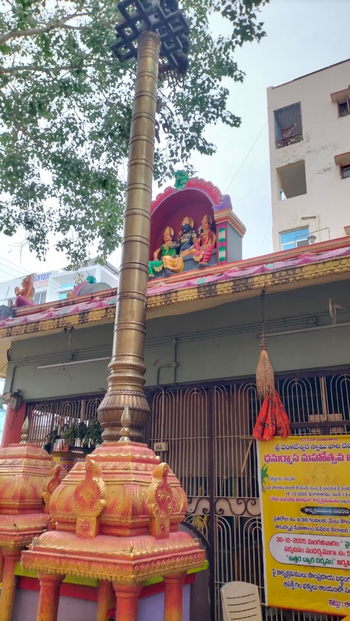 - Temple History This temple is one of the beautiful and peaceful Venkateswara Swamy Temples in Vijayawada. This temple is around 1 Km from Auto Nagar Bus stand and around 8 Kms from main Vijayawada Bus Stand. during dhanurmas tiruppavai seva will be conducted every day. ఈ ఆలయం విజయవాడలోని అందమైన మరియు ప్రశాంతమైన వెంకటేశ్వర స్వామి ఆలయాలలో ఒకటి. ఈ ఆలయం ఆటో నగర్ బస్ స్టాండ్ నుండి 1 కి.మీ దూరంలో మరియు విజయవాడ ప్రధాన బస్ స్టాండ్ నుండి 8 కి.మీ దూరంలో ఉంది. ధనుర్మాసం సమయంలో ప్రతిరోజూ తిరుప్పావై సేవ నిర్వహించబడుతుంది.