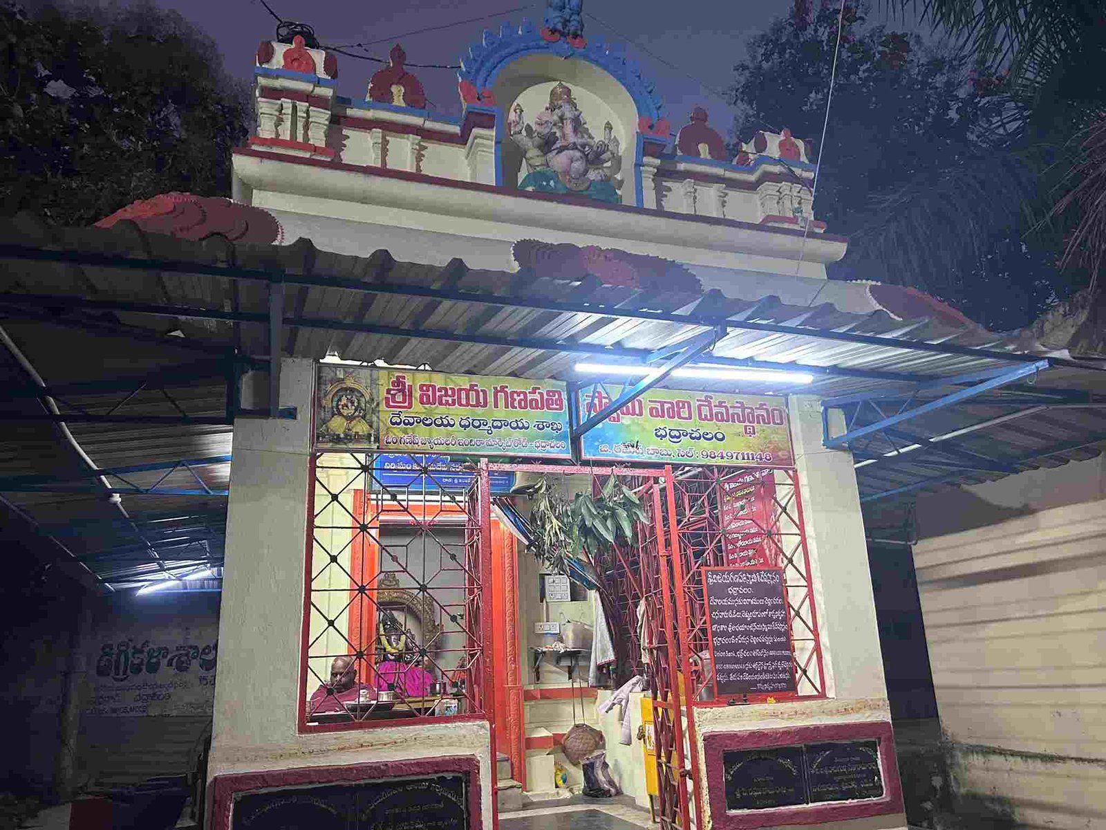 - Temple History Vijaya Ganapathi Temple in Bhadrachalam is located very close to the main Sri Sita Rama Chandra Swamy Temple and holds an important place among the temples in the town. This temple is situated within the same premises as the Sri Abhaya Anjaneya Swamy Temple, making it convenient for devotees to visit multiple shrines in one location. The temple is well connected by road and is approximately 28 km from Palvancha, 40 km from Kothagudem, and about 114 km from the Khammam New Bus Stand. Devotees traveling to Bhadrachalam often include this temple in their pilgrimage due to its proximity to the main Rama temple. Ganesh Chaturthi is celebrated with great devotion and grandeur at Vijaya Ganapathi Temple, attracting a large number of devotees during the festival period. Special poojas, decorations, and rituals are performed, creating a spiritually vibrant atmosphere. When visiting this temple, devotees can also easily visit other important nearby temples such as the main Sri Sita Rama Chandra Swamy Temple, Sri Kodanda Rama Swamy Temple, and the Ayyappa Temple, making it a spiritually fulfilling temple circuit within Bhadrachalam. భద్రాచలంలోని విజయ గణపతి ఆలయం ప్రధాన శ్రీ సీతారామచంద్ర స్వామి ఆలయానికి చాలా సమీపంలో ఉంది మరియు పట్టణంలోని దేవాలయాలలో ఒక ముఖ్యమైన స్థానాన్ని కలిగి ఉంది. ఈ ఆలయం శ్రీ అభయ ఆంజనేయ స్వామి ఆలయం ఉన్న ప్రాంగణంలోనే ఉంది, దీనివల్ల భక్తులు ఒకే చోట అనేక దేవాలయాలను సందర్శించడానికి సౌకర్యవంతంగా ఉంటుంది. ఈ ఆలయానికి రోడ్డు మార్గం ద్వారా మంచి రవాణా సౌకర్యం ఉంది మరియు ఇది పాల్వంచ నుండి సుమారు 28 కి.మీ., కొత్తగూడెం నుండి 40 కి.మీ., మరియు ఖమ్మం కొత్త బస్ స్టాండ్ నుండి సుమారు 114 కి.మీ. దూరంలో ఉంది. ప్రధాన రామ ఆలయానికి సమీపంలో ఉండటం వల్ల భద్రాచలం వెళ్లే భక్తులు తరచుగా ఈ ఆలయాన్ని తమ తీర్థయాత్రలో భాగంగా సందర్శిస్తారు. విజయ గణపతి ఆలయంలో వినాయక చవితిని అత్యంత భక్తిశ్రద్ధలతో మరియు వైభవంగా జరుపుకుంటారు, ఈ పండుగ సమయంలో పెద్ద సంఖ్యలో భక్తులు తరలివస్తారు. ప్రత్యేక పూజలు, అలంకరణలు మరియు ఆచారాలు నిర్వహిస్తారు, ఇది ఆధ్యాత్మికంగా ఉత్సాహభరితమైన వాతావరణాన్ని సృష్టిస్తుంది. ఈ ఆలయాన్ని సందర్శించినప్పుడు, భక్తులు సమీపంలోని ఇతర ముఖ్యమైన దేవాలయాలైన ప్రధాన శ్రీ సీతారామచంద్ర స్వామి ఆలయం, శ్రీ కోదండ రామస్వామి ఆలయం మరియు అయ్యప్ప ఆలయాన్ని కూడా సులభంగా సందర్శించవచ్చు, ఇది భద్రాచలంలో ఒక ఆధ్యాత్మికంగా సంతృప్తినిచ్చే ఆలయాల పర్యటనగా నిలుస్తుంది.
