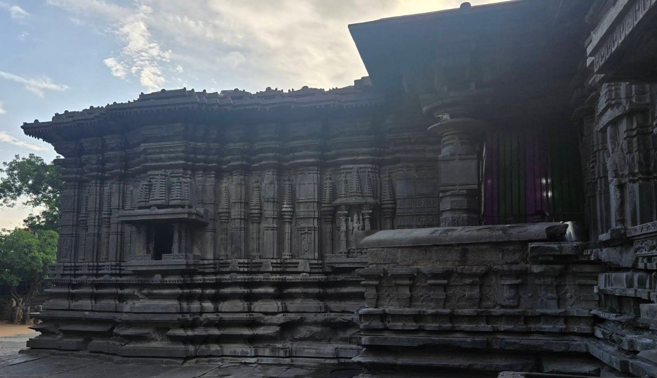 - Temple History The 1000 Pillar Temple, officially known as the Sri Rudreshwara Swamy Temple, stands as a magnificent testament to the "Golden Age" of the Kakatiya Dynasty. Commissioned in 1163 AD by King Rudra Deva, the temple was built during a pivotal era when the Kakatiyas were transitioning from being vassals of the Western Chalukyas to becoming an independent imperial power. This architectural wonder was strategically located in Hanamkonda, the first capital of the Kakatiyas, and took several decades to reach its full splendor. It serves as a lithic record of King Rudra Deva’s military triumphs and his devotion to the deities, blending spiritual sanctity with the political might of a rising empire. Architecturally, the temple is a pioneer of the Trikutalayam (triple-shrine) style, featuring three distinct sanctums dedicated to Lord Shiva (Rudreshwara), Lord Vishnu, and Lord Surya. These shrines are arranged on a unique star-shaped platform, a hallmark of Kakatiya engineering that allows light to play across the intricate carvings at various angles throughout the day. The temple's namesake—its one thousand pillars—is a feat of spatial design; the pillars are so densely packed yet precisely aligned that they never obstruct the view of the deities from the center of the hall. The use of highly polished black basalt and granite gives the carvings a metallic sheen that remains vibrant even after eight centuries. The temple’s history is also one of incredible resilience. In the 14th century, the site faced significant desecration during the Tughlaq dynasty invasions from the Delhi Sultanate. Many of its peripheral structures, including the grand Kalyana Mandapam (marriage hall), were dismantled or damaged. However, the core shrines remained standing, protected by their massive stone foundations and the "Sand-box" engineering technique, which made the structure naturally earthquake-resistant. For centuries, the temple stood as a silent witness to the changing tides of Deccan history, from the fall of the Kakatiyas to the subsequent rule of the Bahmanis and the Nizams. In the modern era, the 1000 Pillar Temple has regained its status as a global heritage icon. It is currently protected by the Archaeological Survey of India (ASI), which has undertaken a massive, years-long project to reconstruct the fallen Kalyana Mandapam using the original stones. Today, the temple is not only a place of active worship but also a key component of the UNESCO World Heritage narrative in Telangana. Its breathtaking Nandi monolith and the "mirror-finish" pillars continue to draw thousands of pilgrims and history buffs, ensuring that the legacy of King Rudra Deva’s masterpiece continues to inspire future generations. అధికారికంగా శ్రీ రుద్రేశ్వర స్వామి ఆలయం అని పిలువబడే 1000 స్తంభాల ఆలయం, కాకతీయ రాజవంశం యొక్క "స్వర్ణయుగం"కి అద్భుతమైన సాక్ష్యంగా నిలుస్తుంది. రాజు రుద్రదేవుడు 1163 ADలో నియమించబడిన ఈ ఆలయం, కాకతీయులు పశ్చిమ చాళుక్యుల సామంతులుగా నుండి స్వతంత్ర సామ్రాజ్య శక్తిగా మారుతున్న కీలకమైన యుగంలో నిర్మించబడింది. ఈ నిర్మాణ అద్భుతం కాకతీయుల మొదటి రాజధాని హన్మకొండలో వ్యూహాత్మకంగా ఉంది మరియు దాని పూర్తి వైభవాన్ని చేరుకోవడానికి అనేక దశాబ్దాలు పట్టింది. ఇది రాజు రుద్రదేవుడి సైనిక విజయాలు మరియు దేవతల పట్ల ఆయనకున్న భక్తికి శిలా రికార్డుగా పనిచేస్తుంది, ఆధ్యాత్మిక పవిత్రతను పెరుగుతున్న సామ్రాజ్యం యొక్క రాజకీయ శక్తితో మిళితం చేస్తుంది. వాస్తుపరంగా, ఈ ఆలయం త్రికూటాలయం (త్రి-క్షేత్రం) శైలికి మార్గదర్శకం, ఇందులో శివుడు (రుద్రేశ్వరుడు), విష్ణువు మరియు సూర్యుడికి అంకితం చేయబడిన మూడు విభిన్న గర్భగుడిలు ఉన్నాయి. ఈ మందిరాలు ఒక ప్రత్యేకమైన నక్షత్ర ఆకారపు వేదికపై ఏర్పాటు చేయబడ్డాయి, ఇది కాకతీయ ఇంజనీరింగ్ యొక్క ముఖ్య లక్షణం, ఇది రోజంతా వివిధ కోణాల్లో క్లిష్టమైన శిల్పాలపై కాంతిని ప్రసరింపజేస్తుంది. ఆలయ పేరు - దాని వెయ్యి స్తంభాలు - ప్రాదేశిక రూపకల్పన యొక్క ఒక అద్భుతం; స్తంభాలు చాలా దట్టంగా నిండి ఉన్నాయి, కానీ ఖచ్చితంగా సమలేఖనం చేయబడ్డాయి, అవి హాల్ మధ్య నుండి దేవతల వీక్షణను ఎప్పుడూ అడ్డుకోవు. బాగా మెరుగుపెట్టిన నల్ల బసాల్