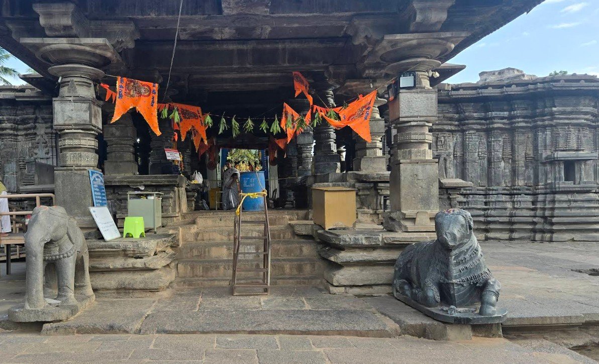 Unique Feature: Unlike most temples where Nandi faces the main deity directly, this Nandi is positioned at the entrance of the complex, looking toward the Lord Shiva shrine from a distance. Its "mirror-like" polish is so smooth that it still reflects light beautifully after 800 years.